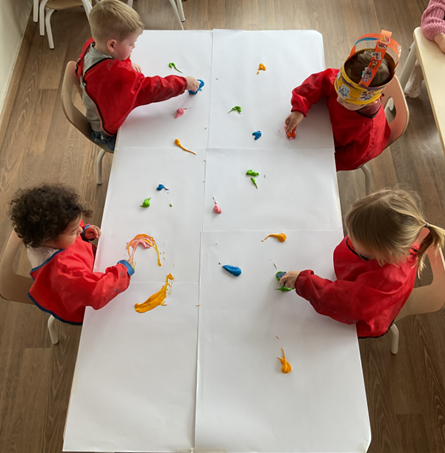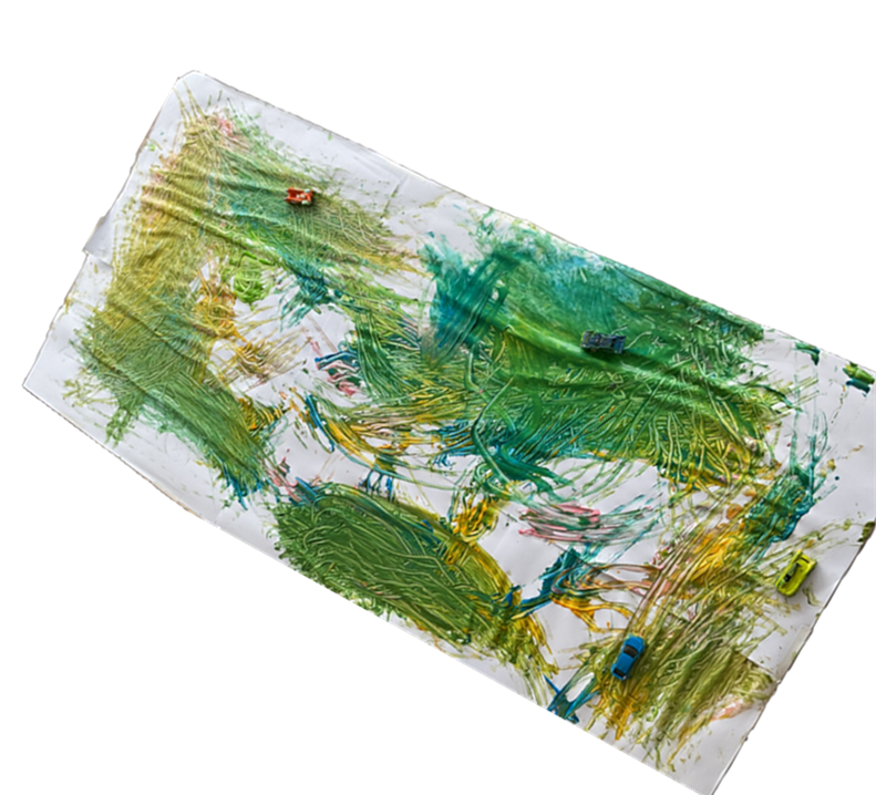Een mooi voorbeeld daarvan is het rijden met auto’s door de verf. Voor kinderen lijkt dit misschien vooral spel, maar ondertussen gebeurt er veel. Ze ontdekken dat beweging een spoor achterlaat, zien verschillen in lijnen en patronen en ervaren wat er gebeurt als ze harder, zachter, recht of in bochten rijden. Daarbij werken ze aan hun fijne motoriek, oog hand coördinatie, concentratie en creativiteit. Ook leren ze keuzes maken en hun eigen ideeën uit te proberen.